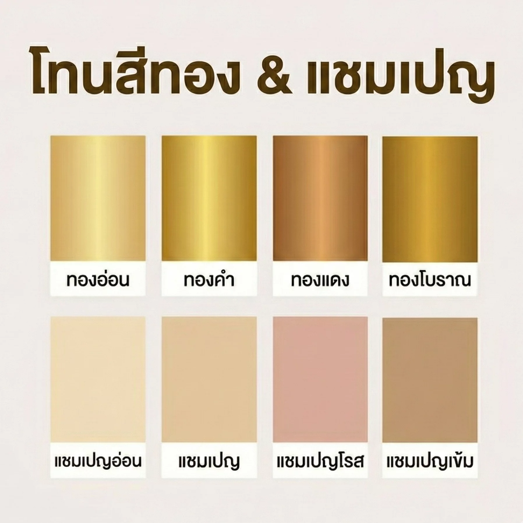 สีทองและแชมเปญคือสัญลักษณ์ของความสำเร็จ ความมั่งคั่ง และความพรีเมี่ยมแบบไม่ต้องอธิบายเยอะ ใช้แล้วให้ฟีลแบรนด์ใหญ่ มีมาตรฐาน และ “ใจถึง” ตั้งแต่แรกเห็น สีนี้เหมาะกับการสร้างความประทับใจในระดับอารมณ์ โดยเฉพาะกับผู้รับที่เป็นลูกค้า VIP หรือผู้บริหาร