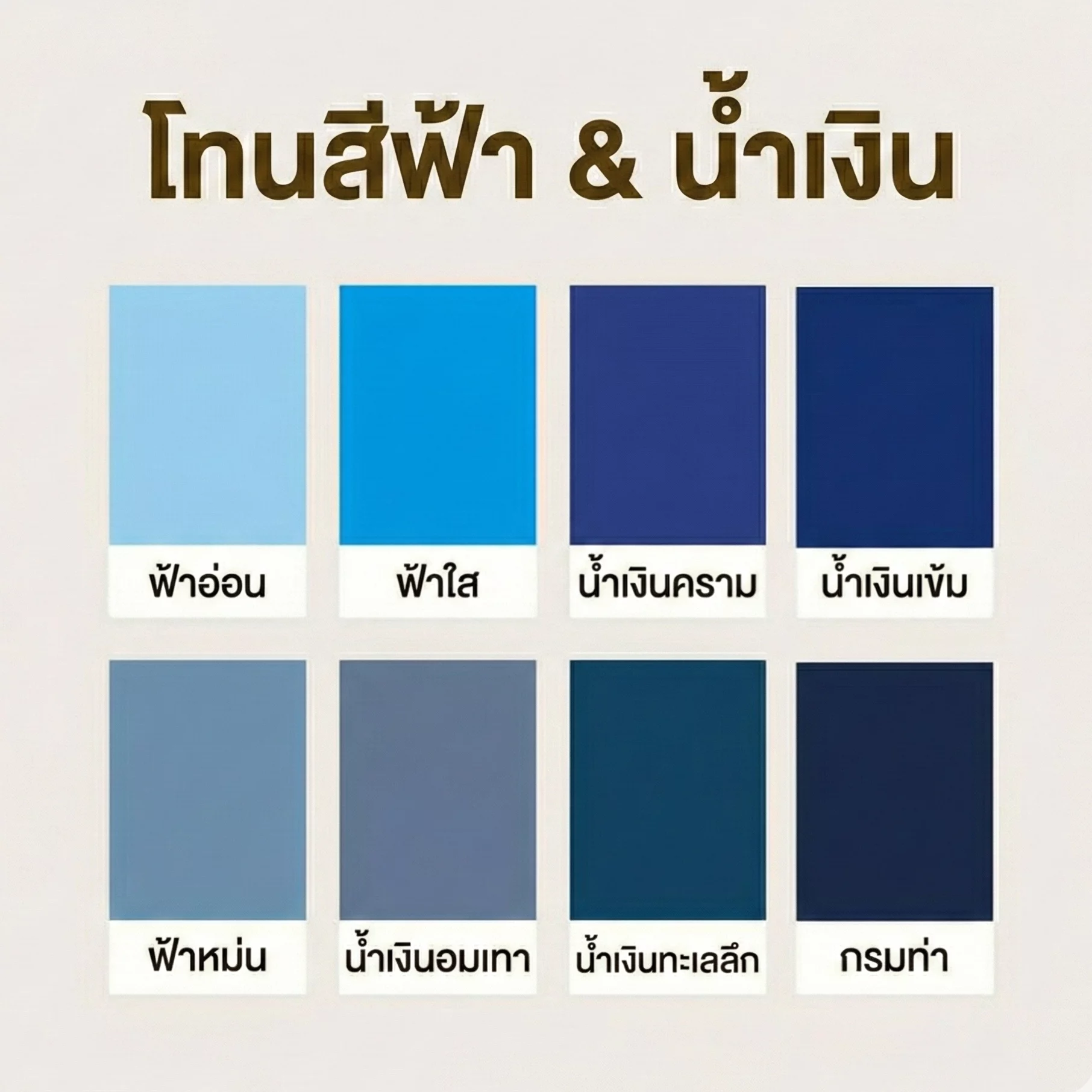 สีฟ้าและน้ำเงินเป็นสีของความมั่นคง ความน่าเชื่อถือ และความเป็นมืออาชีพ เชื่อมโยงกับเทคโนโลยี นวัตกรรม และการทำงานอย่างมีระบบ จึงเป็นสีที่แบรนด์ยุคใหม่และองค์กรนิยมใช้ เพราะดูสุภาพ เป็นกลาง และเข้าถึงได้ทุกเพศทุกวัย
