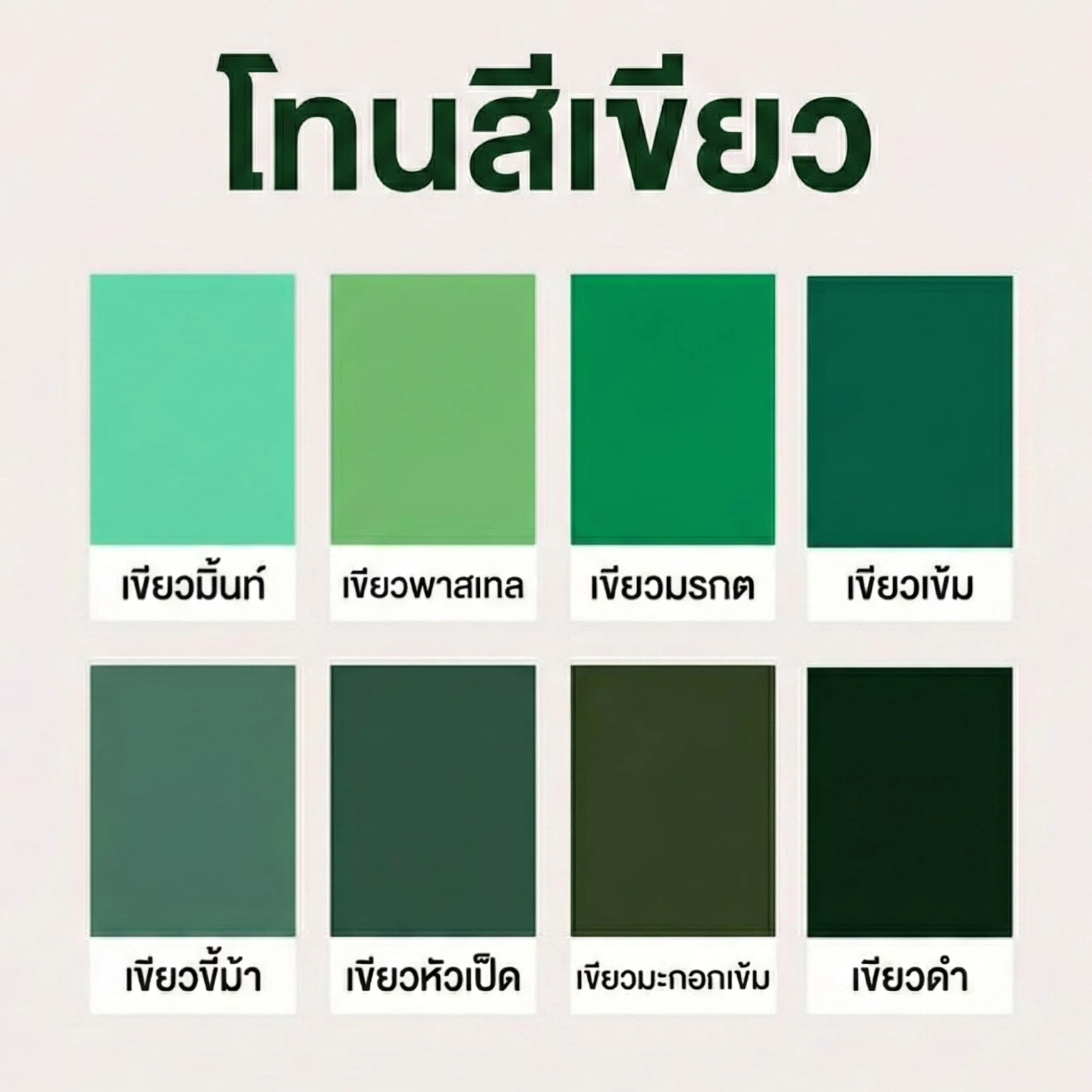 สีเขียวโทนลึกเป็นสีที่สื่อถึงการเติบโต ความมั่นคง และความยั่งยืน ให้ความรู้สึกสุขุม น่าเชื่อถือ และดูมีอนาคต เหมาะอย่างยิ่งกับองค์กรที่ต้องการสร้างภาพลักษณ์ระยะยาว ไม่ฉาบฉวย หรือแบรนด์ที่ให้ความสำคัญกับสิ่งแวดล้อมและความรับผิดชอบต่อสังคม
