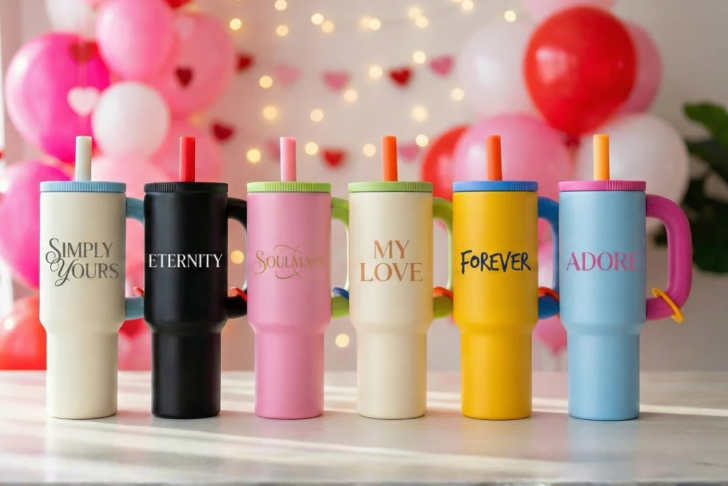 แก้วน้ำสกรีนโลโก้ยังคงเป็นของแจกยอดนิยมที่ไม่เคยตกยุค โดยเฉพาะในปี 2026 ที่ดีไซน์แบบ Minimal มาแรง ดีไซน์เรียบ หวานน้อย แต่ดูแพง ใช้โทนสีอย่าง soft pink, nude หรือ cream ผสมกับฟอนต์บาง ๆ ทำให้แก้วน้ำสามารถใช้ได้ทุกวัน ไม่ถูกจำกัดแค่ช่วงวาเลนไทน์