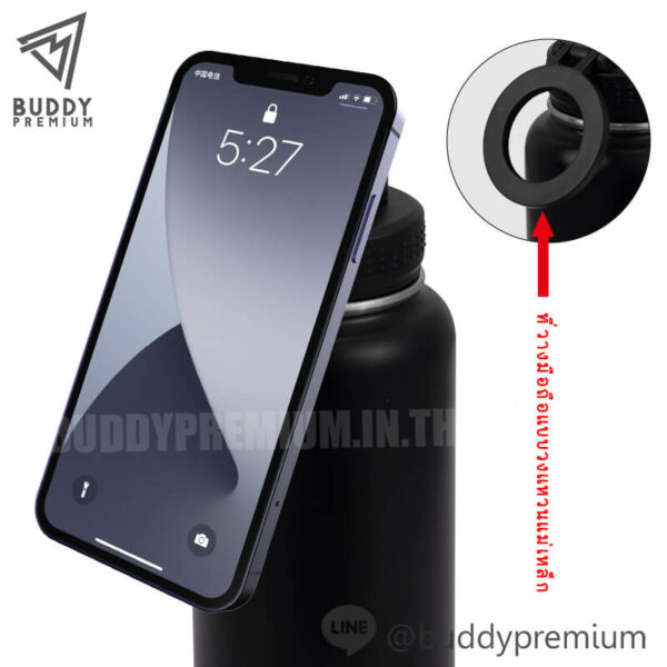 ขวดน้ำสแตนเลสสตีลนวัตกรรมใหม่นี้มีที่วางโทรศัพท์แบบแม่เหล็กที่สามารถปรับตำแหน่งได้ทั้งแนวตั้งและแนวนอน หมุนและเอียง 360 องศา