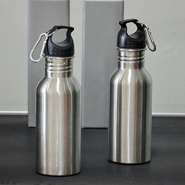 ขวดน้ำสแตนเลส หรือ กระบอกน้ำสแตนเลส ที่ฝามีห่วงคล้องสำหรับคล้องกระเป๋า เหมาะสำหรับใช้เดินป่าแคมป์ปิ้งเป็นอย่างมาก