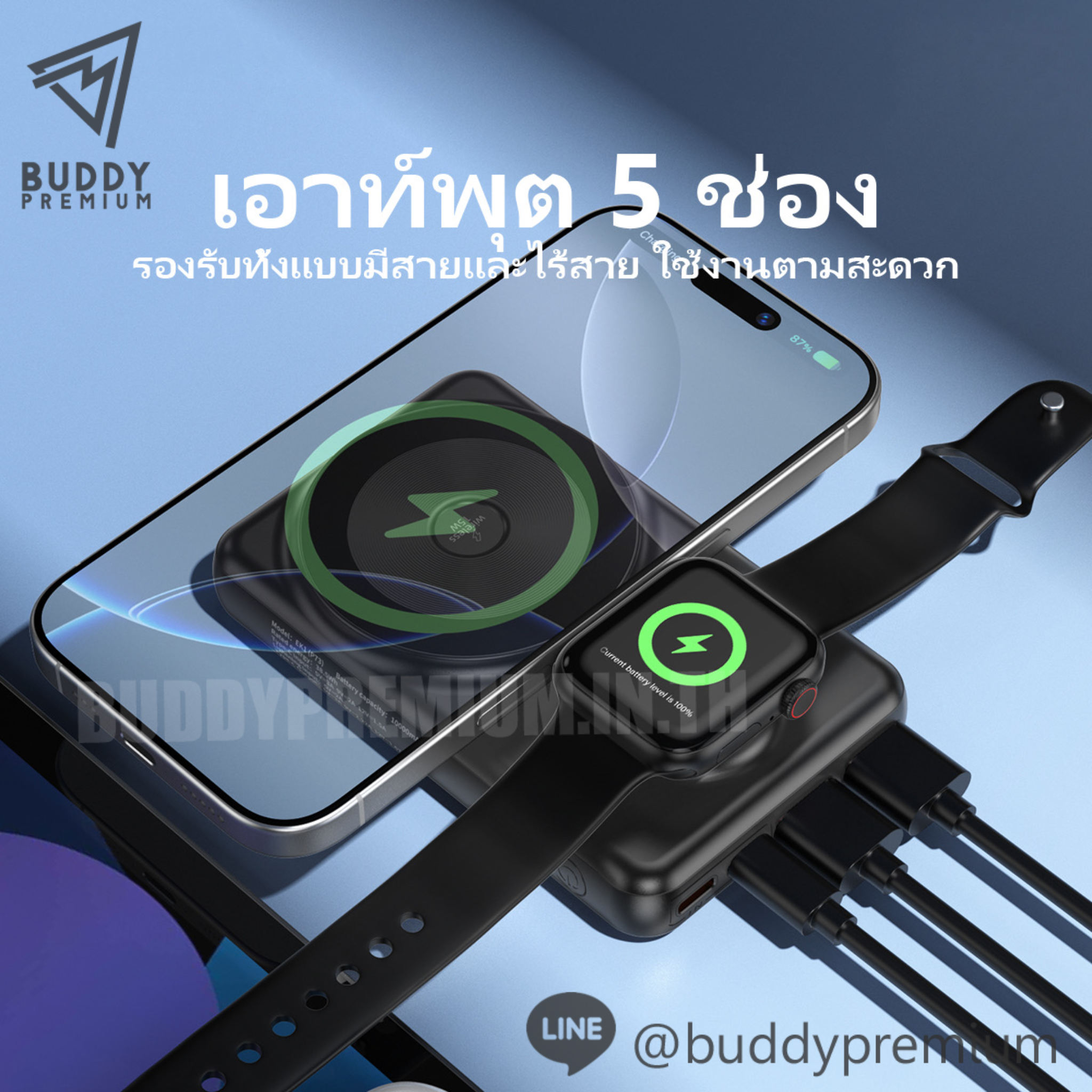 สามารถชาร์จ มือถือและนาฬิกาได้พร้อมกัน ตอบโจทย์การใช้งานในชีวิตประจำวัน พกพาสะดวก ใช้งานครบในเครื่องเดียว 📱⌚⚡