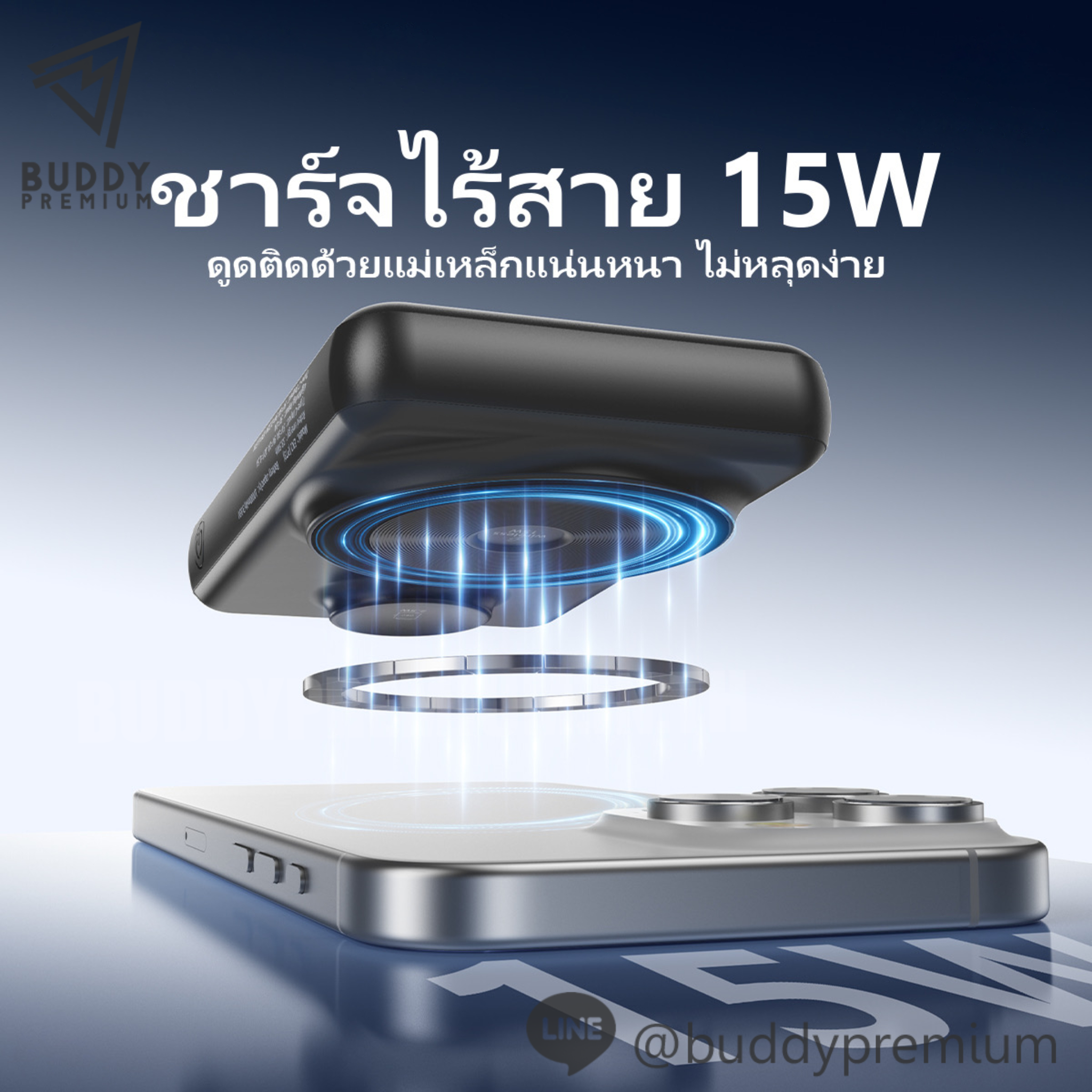 พาวเวอร์แบงค์ดีไซน์ทันสมัย รองรับทั้ง ชาร์จเร็วผ่านสาย และ ชาร์จไร้สายแบบแม่เหล็ก