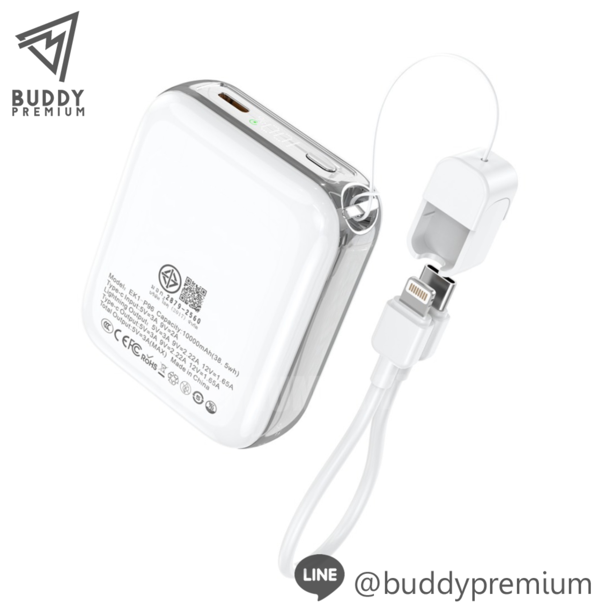 พาวเวอร์แบงค์ดีไซน์เรียบ ขนาดกะทัดรัด ความจุ 10,000mAh รองรับชาร์จเร็ว PD20W มาพร้อมสายชาร์จในตัว 2 แบบ (Type-C / Lightning) ใช้งานสะดวก ไม่ต้องพกสายเพิ่ม เหมาะสำหรับการใช้งานในชีวิตประจำวัน และใช้เป็นของพรีเมียมสำหรับองค์กรหรือกิจกรรมต่าง ๆ